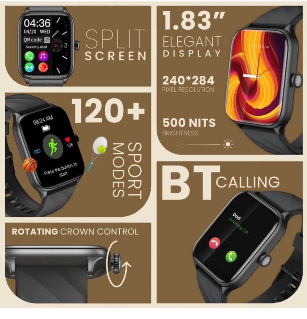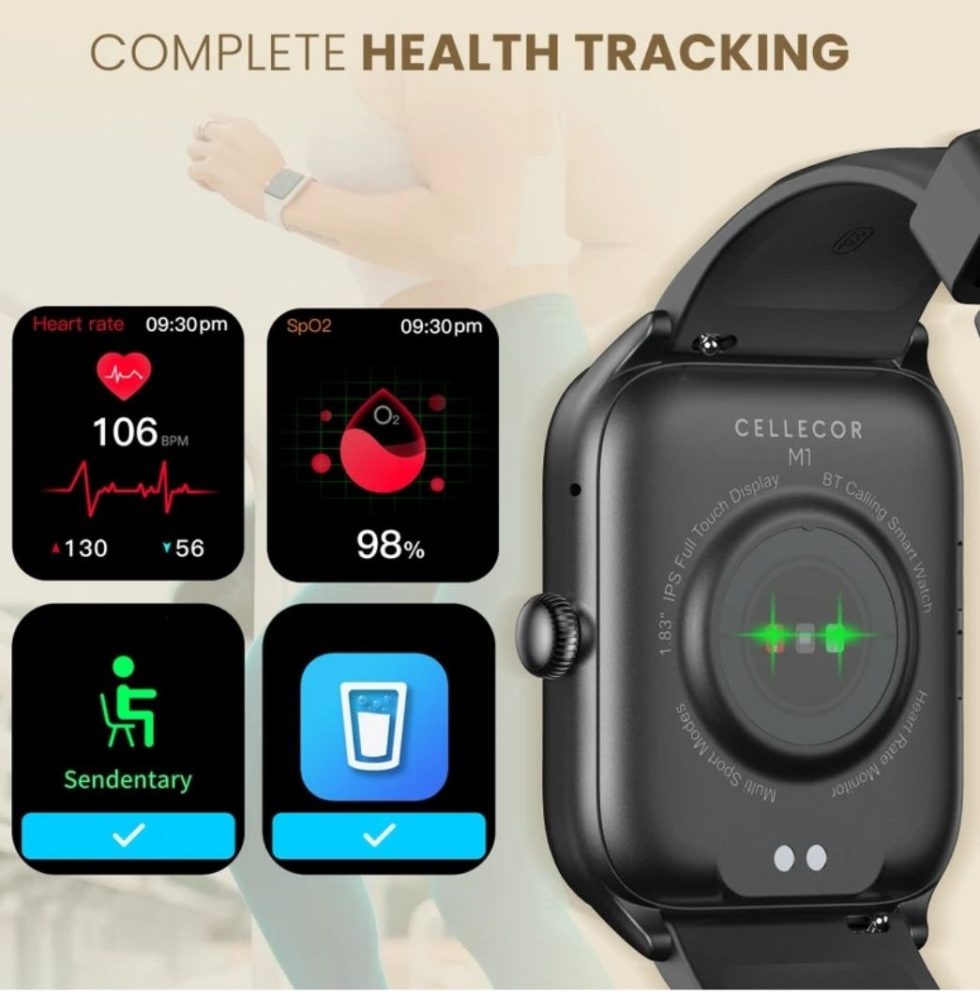 Cellecor STEW 1.83″ BT Calling, 500 NITS, Al Voice Assistant, SPo2, HR, Split Screen Smartwatch (Black Strap, Free Size)